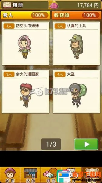 《昭和茶馆故事》是一款超棒的日系经营游戏。在游戏里,你能体验独特的日式经营玩法,努力经营属于自己的茶馆。它有着日式卡通风格的画风,让人十分喜爱。你可以不断制作全新茶品来吸引更多客人,不同个性的客人还会解锁全新故事内容。随着游戏推进,看板娘花子和客人清的故事也会渐渐展开,能让你感受他们在战火中的酸楚恋情以及波澜壮阔的一生。玩法简单易上手,加载完毕点击屏幕就能进入游戏,主界面下方菜单丰富。在茶馆菜单里可经营店铺,点击店前照顾客人、吸引生意,还能经营装扮店铺。点击食品能购买和合成更多茶品食物吸引客人,点击相册可记录图鉴。这款游戏能带你在喧闹世界中寻找平静简单的爱情,感受一段平凡却壮烈的人生,快来体验吧!