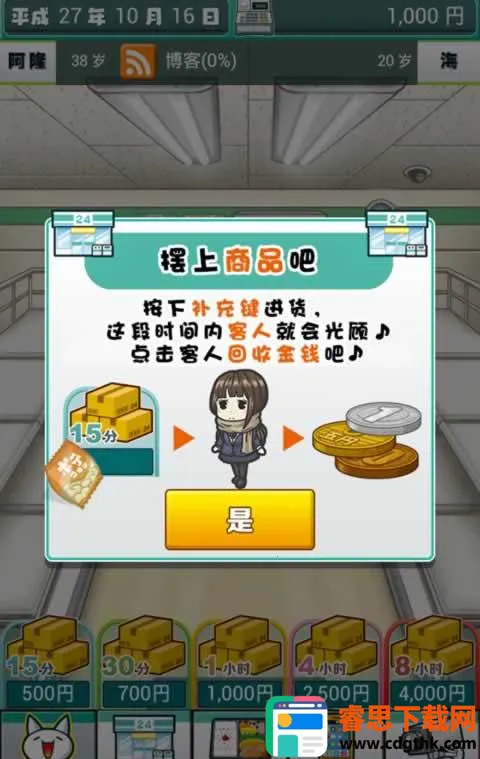 2. 放置玩法轻松休闲:采用放置类游戏特色,玩家能随时随地利用时间碎片,通过补充便利店商品吸引客人光顾,点击客人赚取金钱,玩法简单易上手。