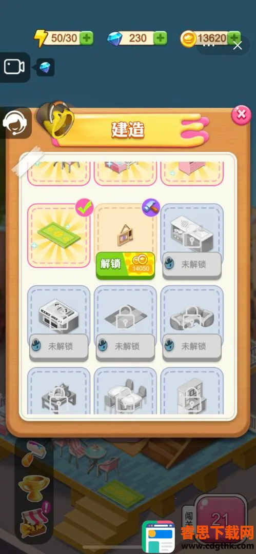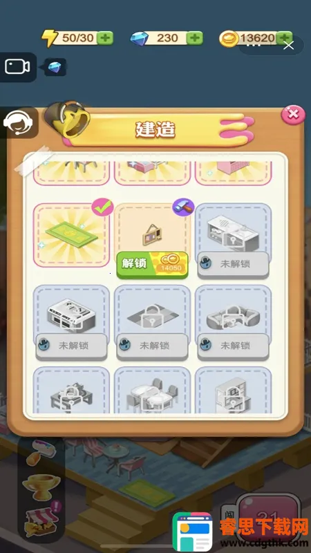 主界面是三层餐厅建筑,可通过游戏获金币建设。