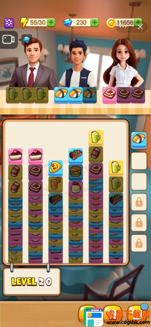 以美食卡牌为题材的三消小游戏,玩法独特有趣。
