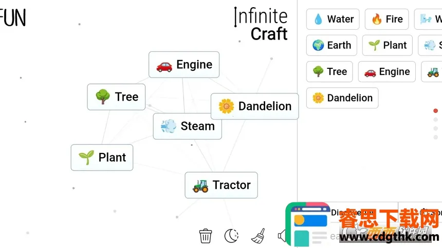 1. 独特元素组合:游戏从土、风、火和水四种元素出发,玩家可将它们自由组合成新物品,像人物星象、虚构人物等,带来丰富创造体验。