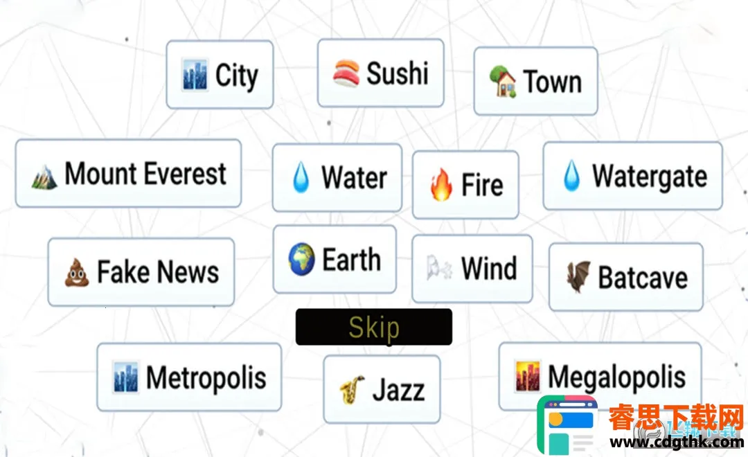 1. 独特元素组合:玩家能从土、风、火和水四种元素起步,将它们自由组合成各类新物品,像人物星象、虚构人物等。