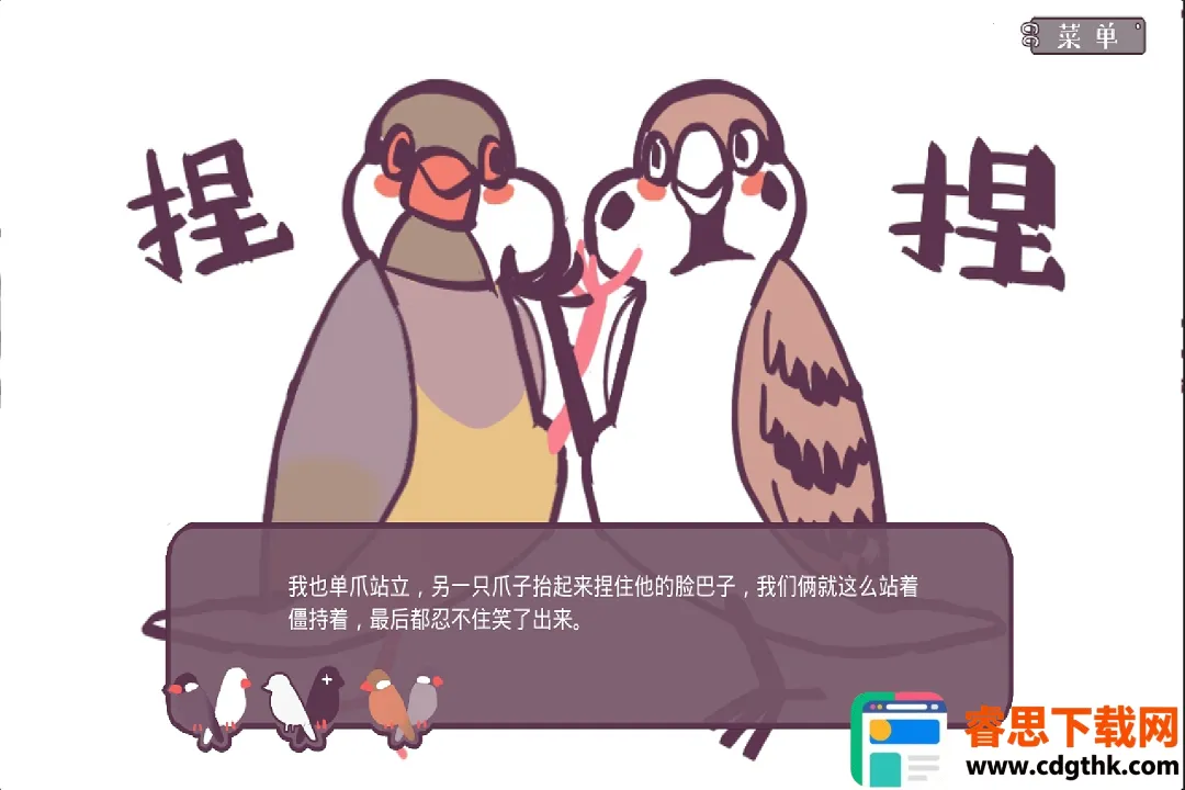 游戏玩法是AVG形式,通过各种选择推进剧情,每个选择都影响走向,还有多个结局等你解锁。这里有性格各异的鸟类角色,比如树麻雀浅野君等,随着你的选择,好感度和结局会改变。而且鸟儿们还能换装,有多套不同风格衣服,能展现不同魅力。