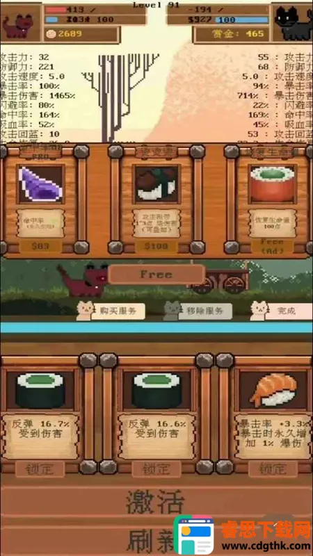 3. 数值成长体系明确,战斗获属性和技能点数直观,能实现不同风格猫科战士成长。