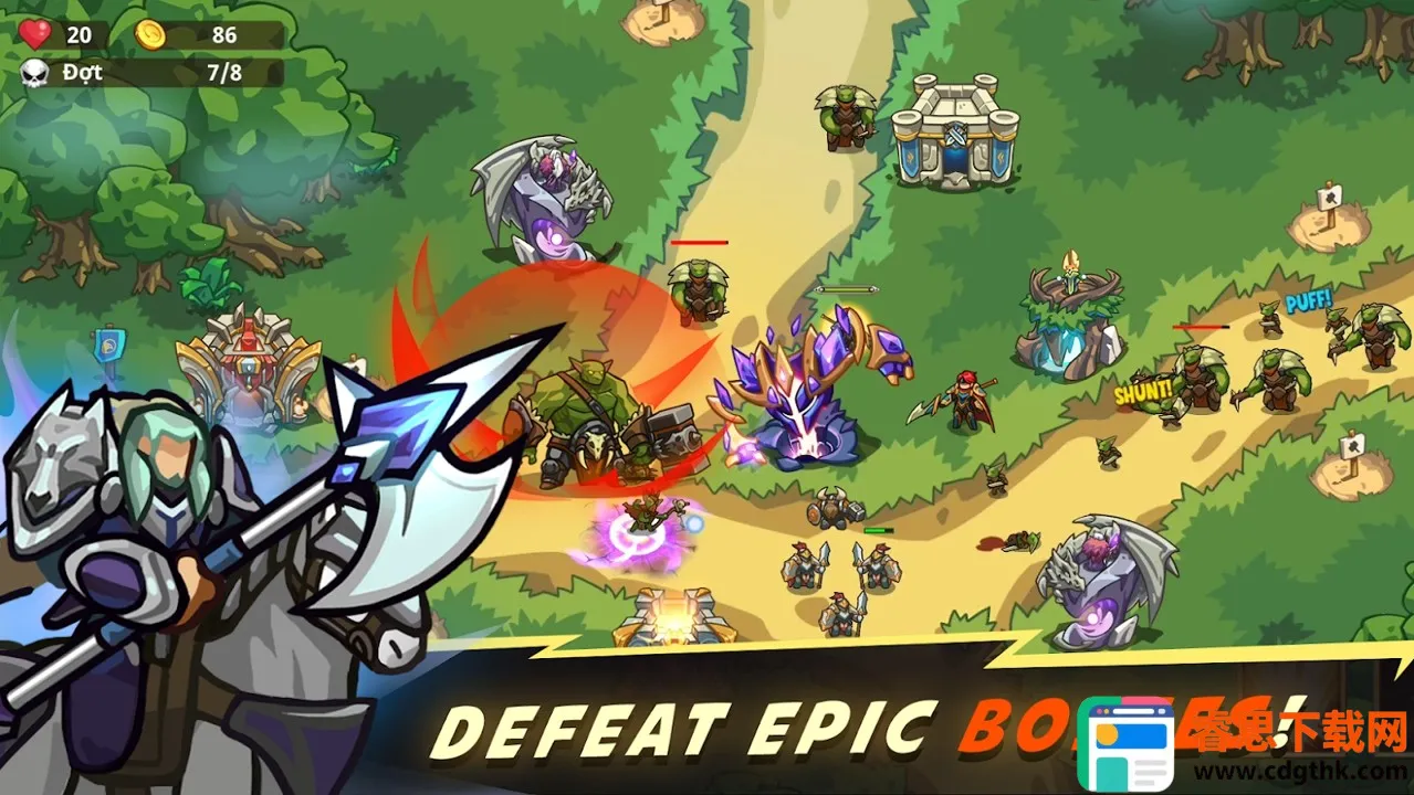 4. 可招募远古神与多个英雄,召唤升级符文,增强战斗实力。防御塔与英雄搭配灵活,考验玩家战术规划与应变能力,适合塔防爱好者。