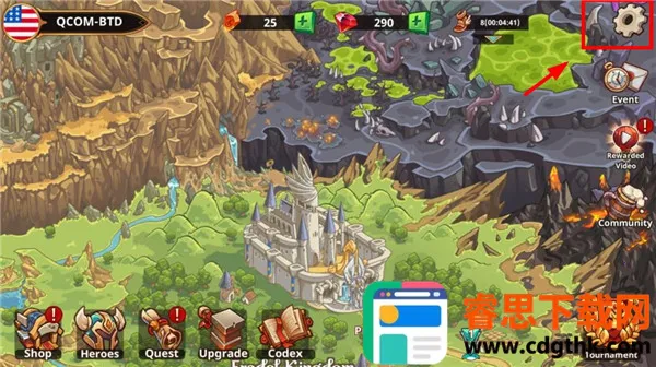 1、下载并安装本站提供的战国争霸2最新版,打开进入游戏点击右上角设置按钮