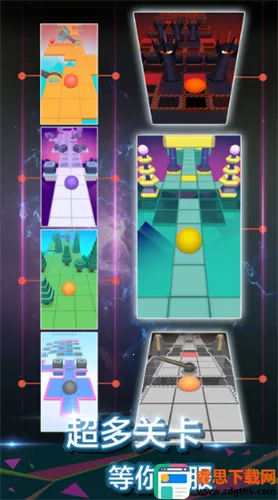 2. 多样玩法:核心玩法是左右滑动控制小球,避开障碍物,收集钻石和钥匙,部分关卡需触发机关。