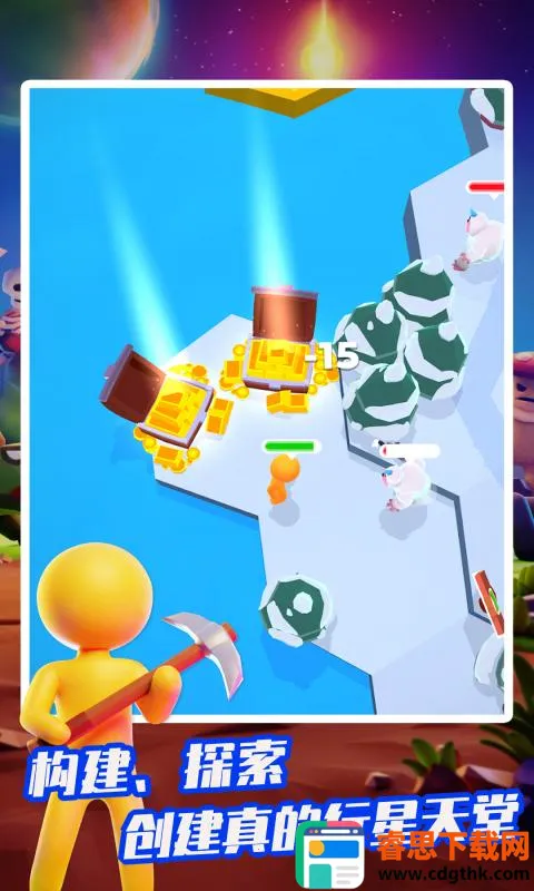 2. 多样资源采集:能通过挖掘、砍伐、熔炼等采集不同资源用于建造升级。