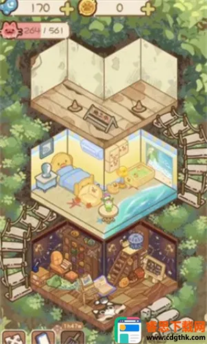3. 多样日常经营:需完成铲屎、清洁、采集食材、制作料理等任务获取金币,解锁更多扩展层数,经营内容丰富。