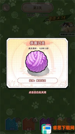 3. 音效以轻快钢琴声和猫咪叫声为主,打造出治愈的游戏氛围。