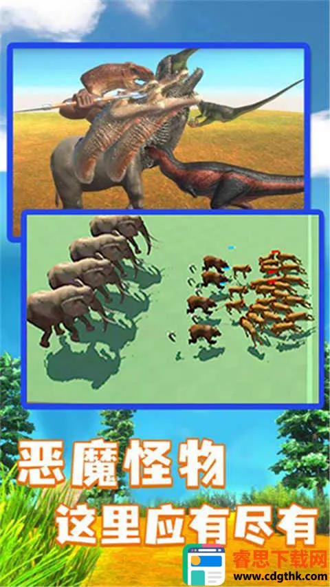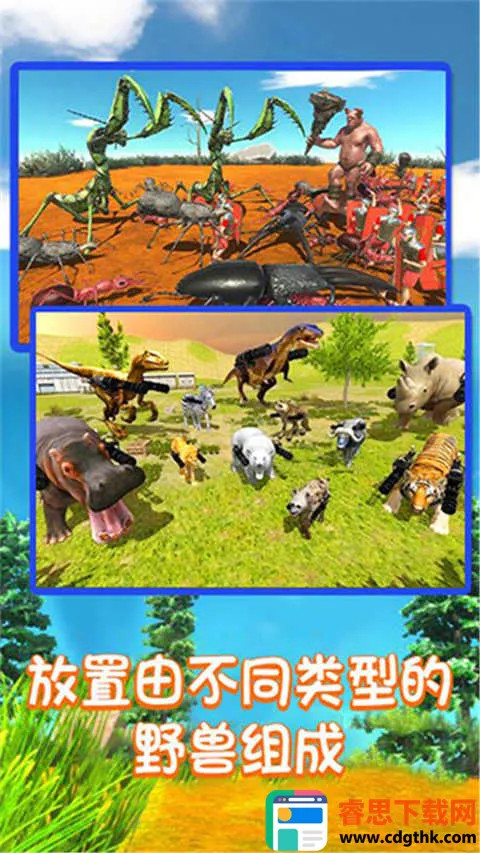动物战场模拟器移动版是融合策略沙盒与模拟玩法的远古生物战争手游。以史前地球为舞台,有数十种远古生物,多种玩法模式。操作极简,画面流畅,还有丰富特色与优势,如深度兵种协同等,定期更新保持新鲜度。