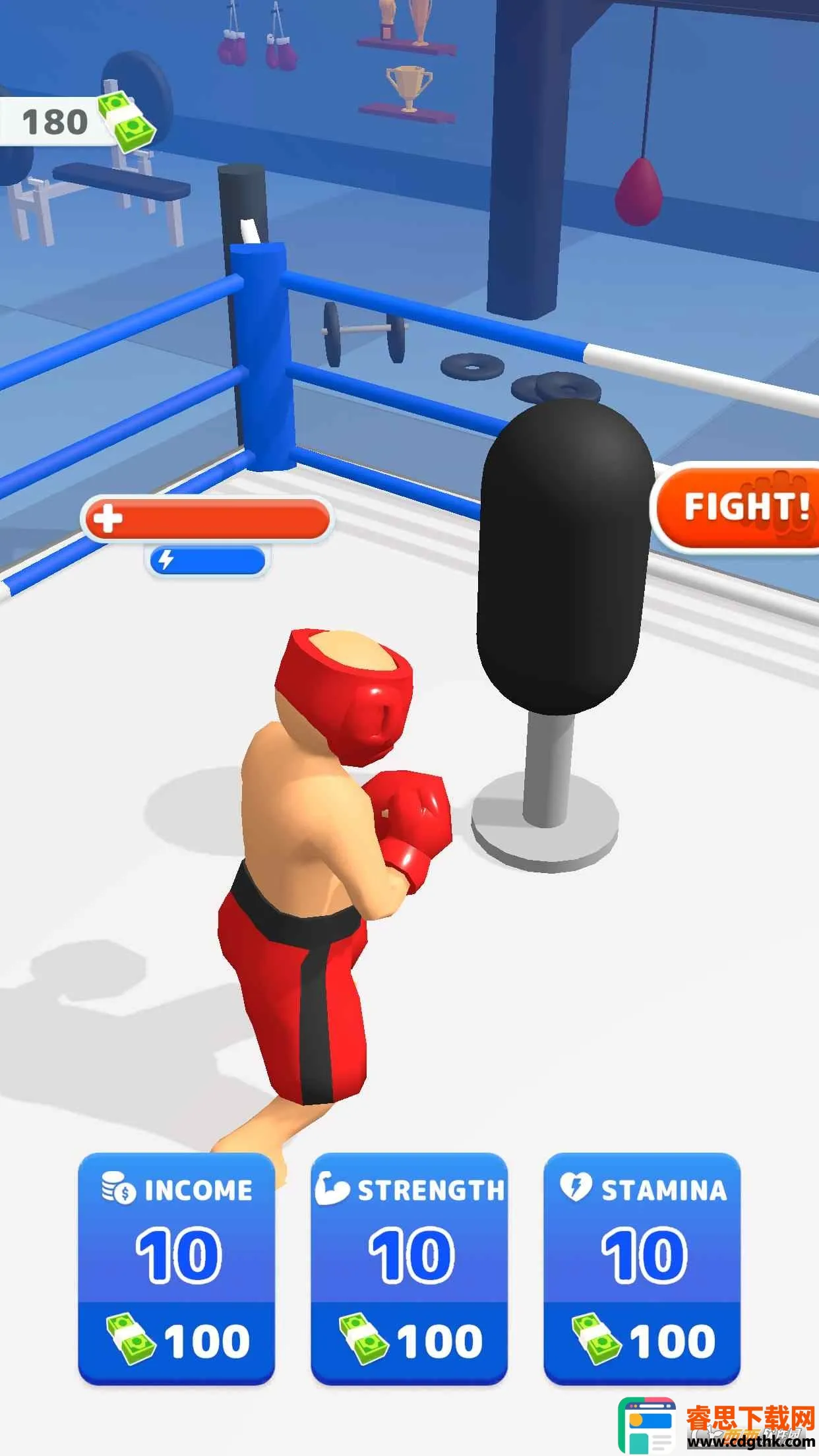 想体验刺激的拳击格斗吗?那就来试试拳击小子吧!在这款游戏里,你能成为初出茅庐的拳击手,通过训练获得奖励提升耐力和力量,升级设施,一步步攀升拳击水平。点击屏幕控制拳击手击打沙包获奖励,花费钞票升级属性,点击FIGHT开启对战,战胜对手赢奖励,每五关还有强大BOSS等你挑战。获取装备也很有趣,开启通过挑战BOSS获得的包裹,就能在装备界面自由搭配。游戏特色满满,丰富装备系统可升级各类装备提升能力,收集新装备还能提升赛场表现。画风简洁色彩丰富,带来视觉冲击。玩法简单易上手,适合各类型玩家。在这里,你能解锁不同皮肤自由战斗,随机匹配对手,每场比赛都充满挑战,快来下载开启你的魔性格斗之旅吧!