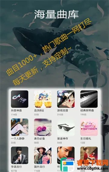 2. 歌曲丰富多样,涵盖抖音神曲、经典钢琴曲、怀旧老歌、古风民谣等,大部分可免费使用。