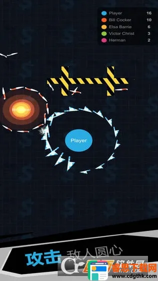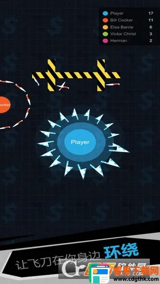 1、操作简单易上手:通过灵活移动收集飞刀,摁住屏幕移动防御,松开即攻击,轻松就能开启精彩io对决。如新手教程中滑动屏幕控制球体拾取飞刀,拾取越多积分越高、战斗力越强,玩家可快速熟悉玩法。