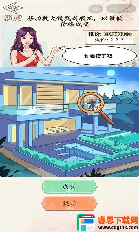 1. 游戏玩法独特新颖,玩家需要化身精明买家,通过细致观察找出商品隐藏瑕疵,进而压低售价,最终成功拿下商品,体验真实又解压的砍价快感。