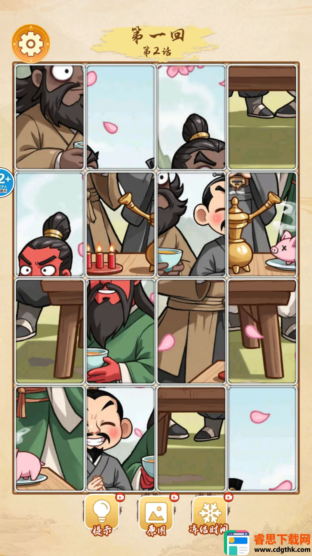 4. 从基础关卡逐步升级,满足新手入门与资深玩家进阶需求,完成拼图解锁三国片段讲解。