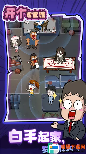 开个密室馆是一款模拟经营游戏,玩家扮演密室馆老板,经营惊险主题密室。要解锁道具设施、招募演员扩大店铺。游戏有多种玩法,提供多难度等级逃生室与不同剧情,操作简单易上手,画风卡通,随时畅玩。