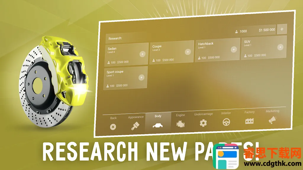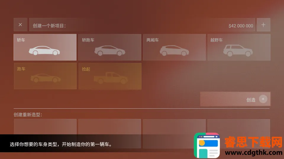 3.进入游戏主界面,点击右下角的“造车”选项,开启你的汽车制造之旅。
