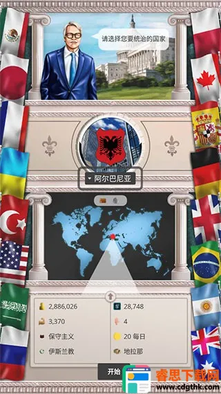 2. 自由选择开启征程:开局可自由选择任一国家,以总统身份开启专属治国征程。