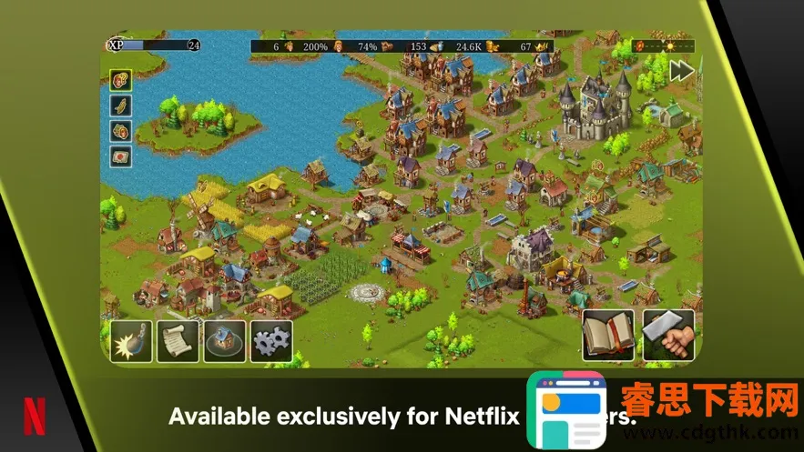 4. 持续成长奖励:城镇级别奖励玩家进程,每次玩游戏时,都会成为一个更好的统治者,完成任务可获得奖杯、金钱等,还有升级解锁科技等设定。
