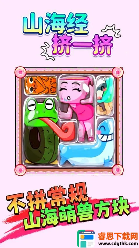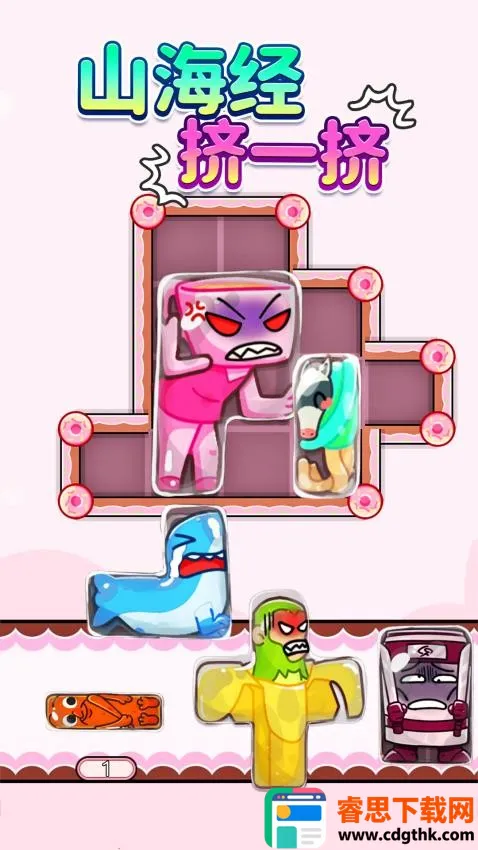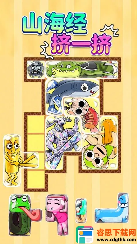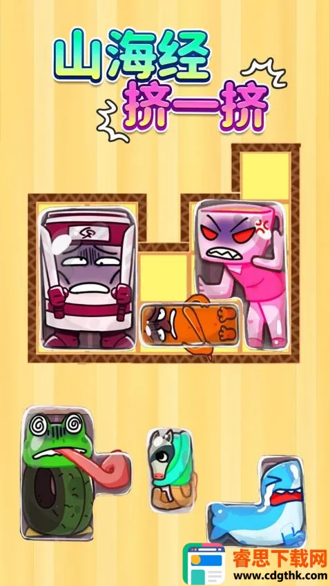 山海挤一挤安卓版是融合山海经异兽与空间解谜的游戏,玩法简单,将不同形状怪物拖到对应格子,还有分辨真假等游戏。操作易上手,关卡难度递增,有多种山海经角色,丰富有趣,快来挑战!