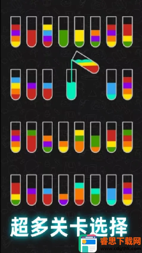 2. 丰富关卡挑战:关卡丰富,第一关有官方引导,后续难度渐升,更多瓶子和液体颜色带来更多挑战。