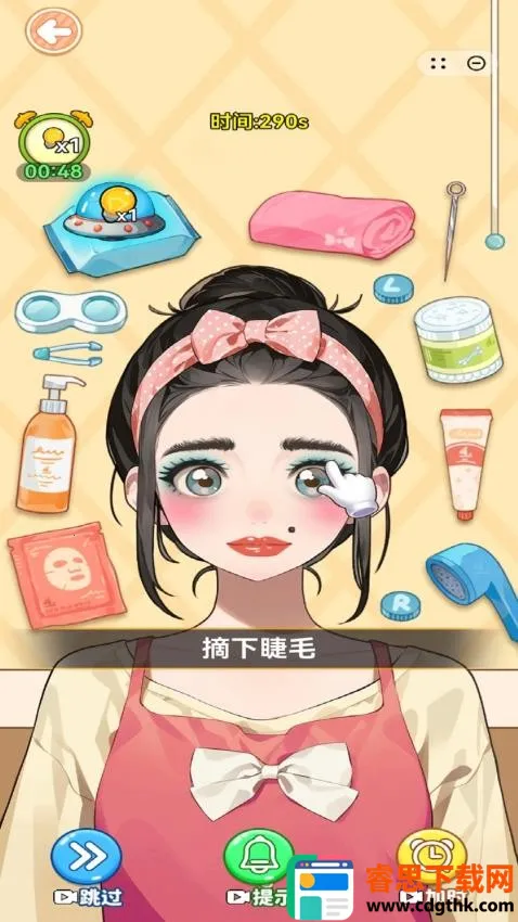 4. 挑战从基础护肤开始,完成护肤才能开启后续化妆操作及相关任务,使游戏流程更合理有序。
