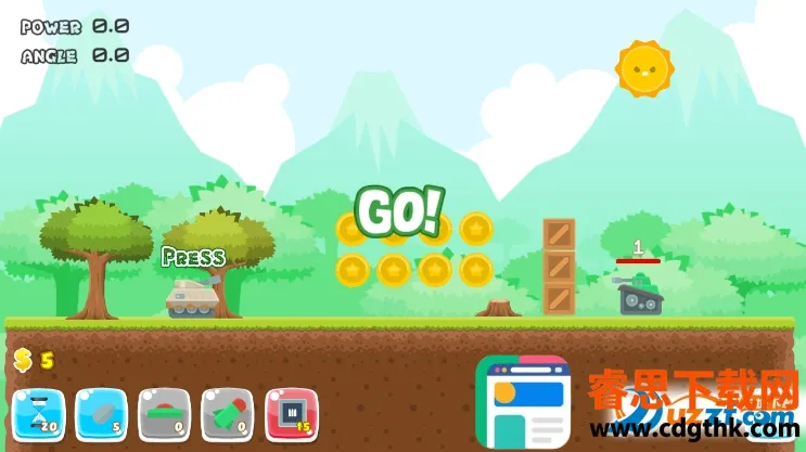 3、独特玩法趣味足:采用双线操控,要同时控制坦克移动与炮塔旋转;炮弹是抛物线轨迹,需精准预判;还有回合制对决,每回合有固定行动时间。
