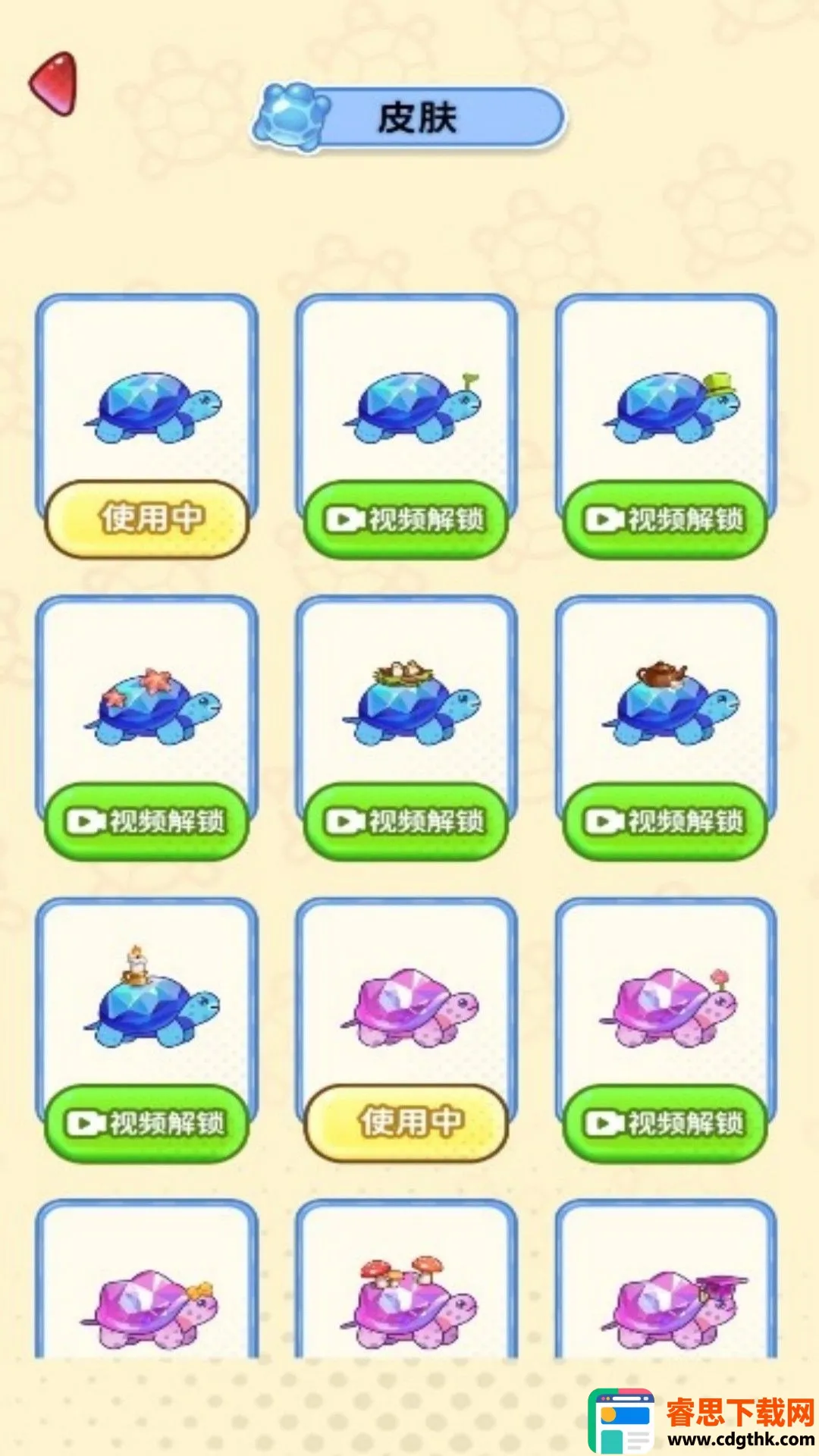 1. 游戏以可爱乌龟形象为核心元素,打造出独特的视觉主题,色彩鲜艳明快,乌龟设计灵动可爱,能带来愉悦的视觉体验。