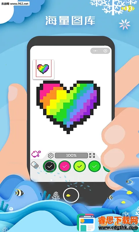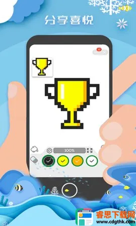 像素填色达人这类游戏超有趣!它能让你充分发挥创造力和想象力。这里有海量丰富的填色内容,像可爱动物、精美风景、幻想角色等各种主题图案和模板任你选。界面简洁,手指轻轻滑动就能选色填充。它提供多种绘图工具,画笔颜色、填充方式多样,还有复杂渐变工具,能满足不同需求,助你创造独特艺术作品。操作简单易上手,适合各年龄段。填色过程能帮你缓解压力、减少焦虑,沉浸艺术创作。完成的作品可随时保存,还能分享到社交媒体,与朋友交流创作经验、技巧,参加社团活动得奖励。双指缩放功能方便细致描绘细节。无论是想放松心情,还是提升艺术水平,像素填色达人都能满足你,快来开启你的像素涂色旅程吧!