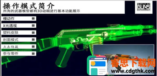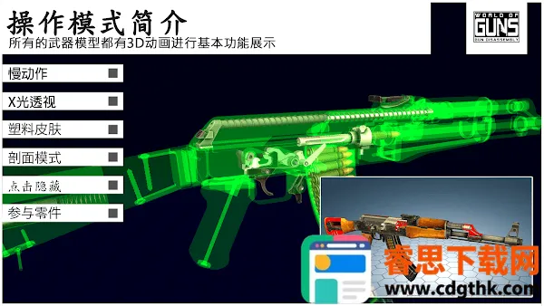这里有海量且专业的武器库,收录超261个模型,涵盖现代名枪、二战经典乃至博物馆稀有品。还有自由无界的观察控制,提供全方位视角控制,配备分层X射线剖面切割、时间减慢最多50倍慢放等功能,让你能透视研究机械联动瞬间。