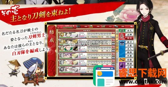 2、**丰富剧情与角色养成**:剧情深度考究,通过角色台词和性格展现出耐人寻味的世界观背景。每把刀剑都有深刻背景故事,玩家能收集刀剑男士之间的回想。还能召集各类刀剑历史人物进行培养训练,强化他们的能力,打造最强刀剑部队。