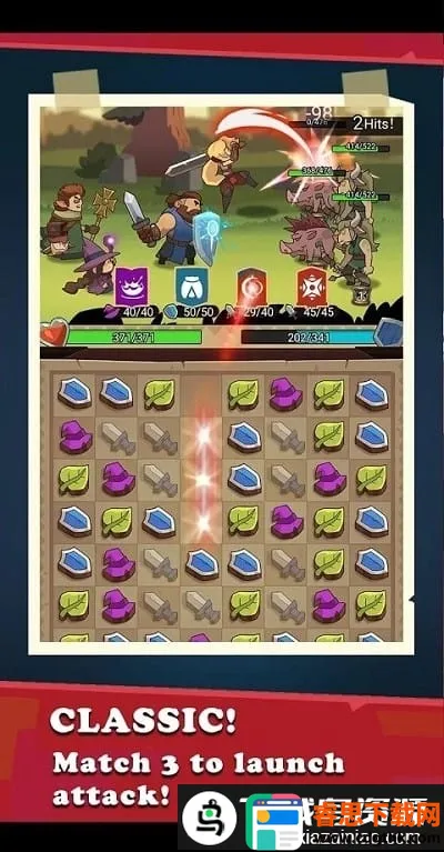 匹配3位英雄是一款Q版美术风格的消除类游戏。恶魔掳走公主,玩家指挥四位英雄拯救。结合三消与战斗,匹配方块发动攻击,还有丰富收集元素、成长系统,支持多人对战,玩法多样刺激。