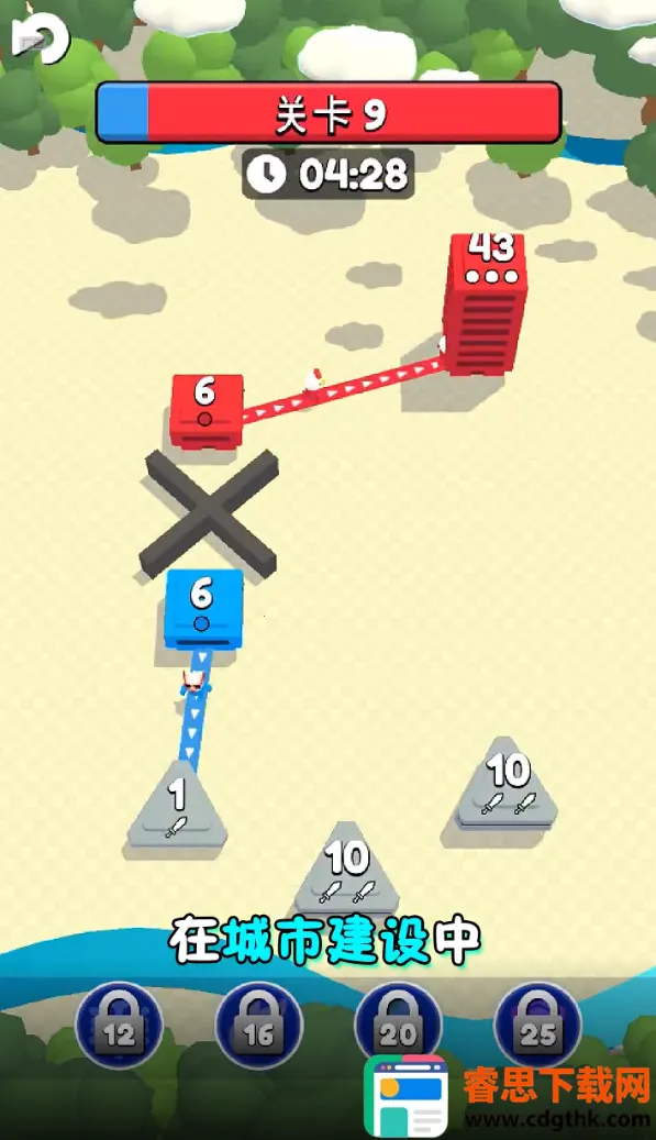2. 趣味策略玩法:围绕城市地盘争夺,通过划线连接塔楼运用战术,扩张帝国版图。