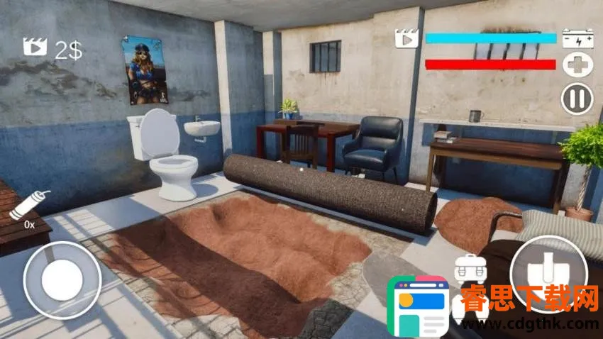 全民挖坑模拟是款休闲挖掘游戏,在监狱场景中找位置挖掘逃生,要避开巡逻警卫。可兑换工具加快速度,挖掘有宝物能换物品,还有隐藏位置等特色,从院子出发开启地底探险。