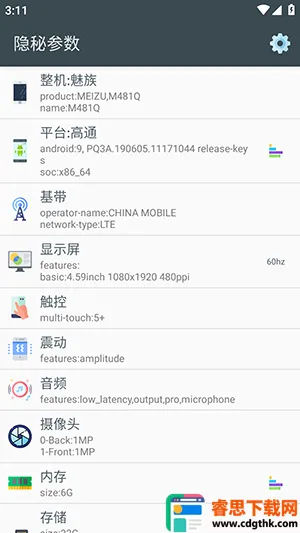 1、下载安装本站提供的安卓隐秘参数软件,进入主界面可以看到很多功能;
