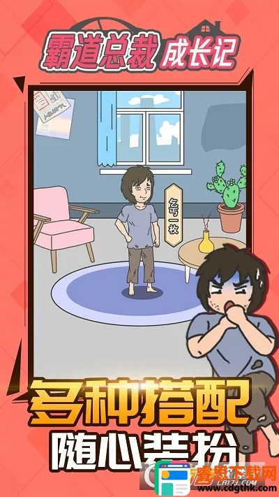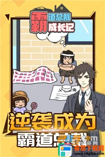 《霸道总裁成长记》是一款融合搞笑剧情与经营元素的休闲游戏。玩家从创业失败的乞丐起步,通过闯关赚钱解锁服装道具,利用道具完成任务,融入解谜元素,体验从乞丐到霸道总裁的逆袭,玩法多样,画风幽默。