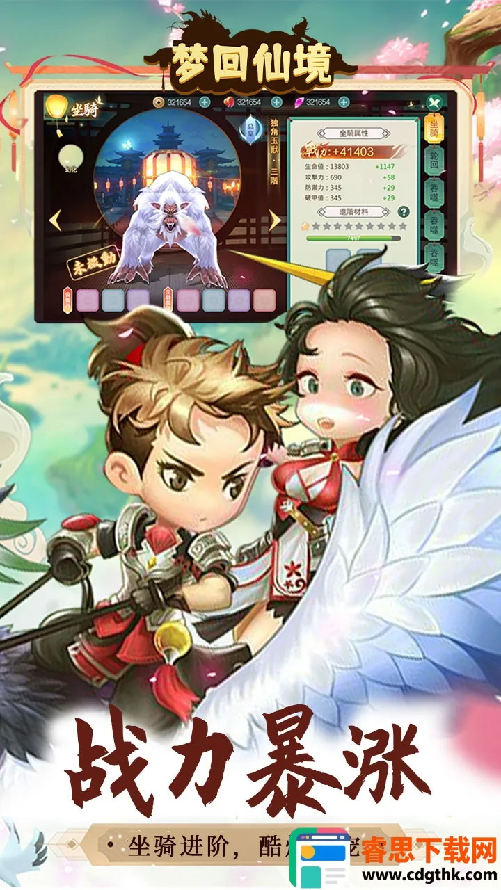梦回仙境2026官方正版是武侠MMORPG手游,带你穿越古风世界。Q版仙灵画风,多职业策略配合。全场充值永久0.1折,福利超多,如完成任务抽奖、签到领道具等,还有多种职业可选,畅享多元游戏乐趣。