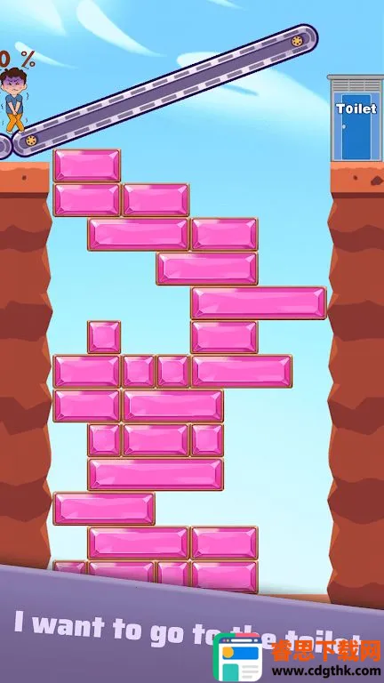 这是一款休闲游戏,角色急需上厕所,你要移动屏幕底部方块消除它们得分,积累分数助角色前进通关到达厕所,在消除方块过程中感受快节奏趣味。