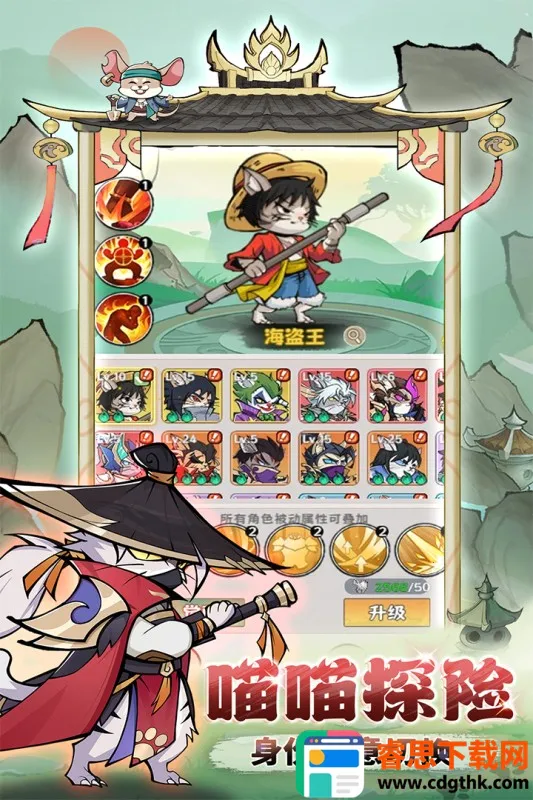 《探探猫大作战》内置菜单最新版本超棒!游戏里各种资源道具能直接获取,好多角色免费使用,战斗模式全自动,选好角色放置就行,通关奖励丰厚,超爽!猫咪角色多样,像小丑路飞、侠客赵云等,还能在不同环境变身。玩家能开启全自动作战模式,闯关轻松。游戏背景卡通超可爱,小猫咪有专属房间、武器服装。在这里,你能探索更多奥秘,参加各种大作战,激发猫咪潜在技能,看它们释放独特作战能力,小猫咪间的对决超刺激。无需繁琐操作,点点就能挂机升级提升实力。还有迷宫玩法,考验策略操作,找到出路击败敌人。装备系统丰富,能打造强力武器。除单人冒险,还有猫神决斗模式可与其他玩家实时对决。快来下载体验这趣味十足的游戏吧!