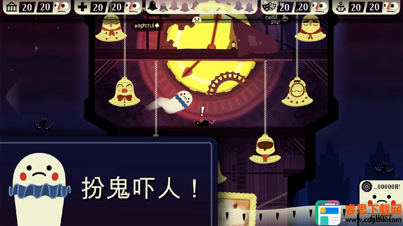 2操控可爱鬼魂巡视,阻止人类闯入,依据线索冒险,闯关刺激,玩法易掌握。