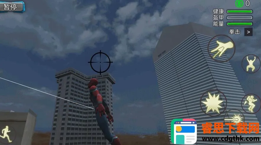 绳索英雄战斗是一款动作闯关游戏,采用第三人称视角。玩家化身蜘蛛英雄在超大都市地图冒险,利用蛛丝穿梭高楼,完成解救人质等任务,解锁技能与套装,守护城市,体验当超级英雄的快感。
