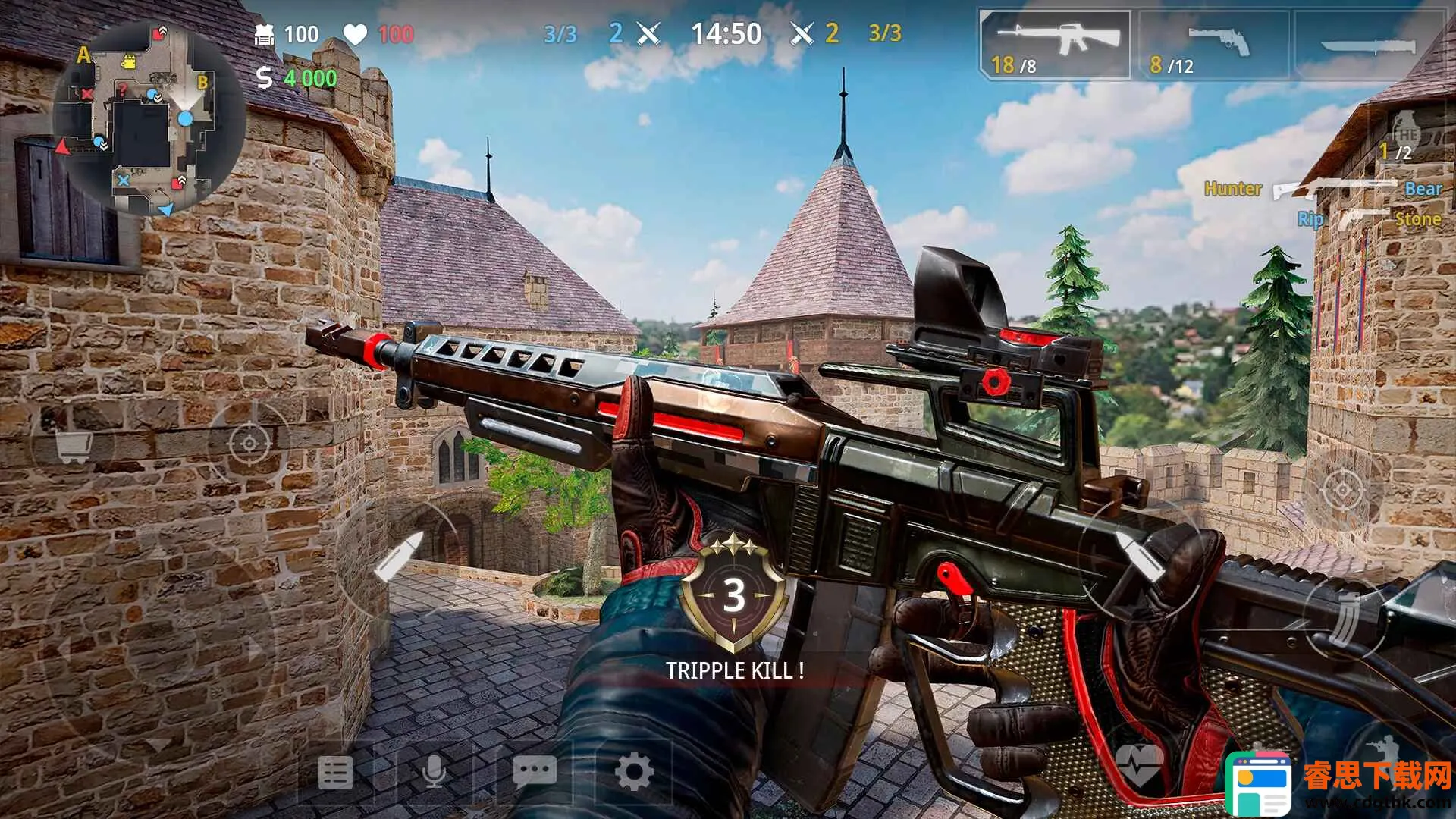 2. 多种游戏模式:拥有经典、复活、夺旗、僵尸模式、炸弹模式、刀具、死亡竞赛、军备竞赛、狙击手等9种游戏模式,甚至还有8v8PvP模式。多样模式带来丰富体验,满足不同玩家的战斗喜好。