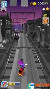 2. 简单手势操作,能跳跃下滑和转向,避开障碍物与保安,收集道具提升表现。
