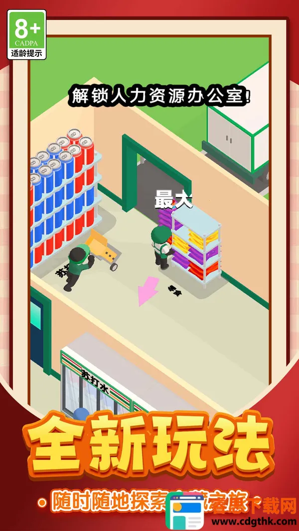 2. 店内提供丰富多样的食品饮料和日用品,玩家可自由组合,满足不同顾客需求,充分发挥经营才能。