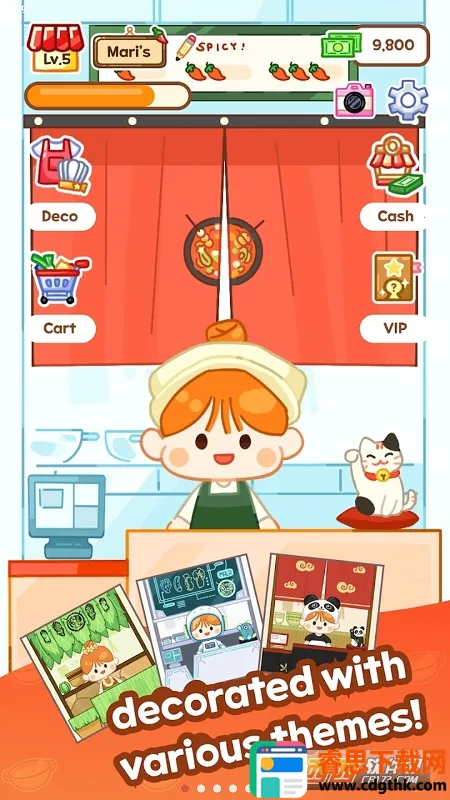 2. 超50种装饰物品,从餐厅装修到服装,打造个性麻辣烫餐厅。