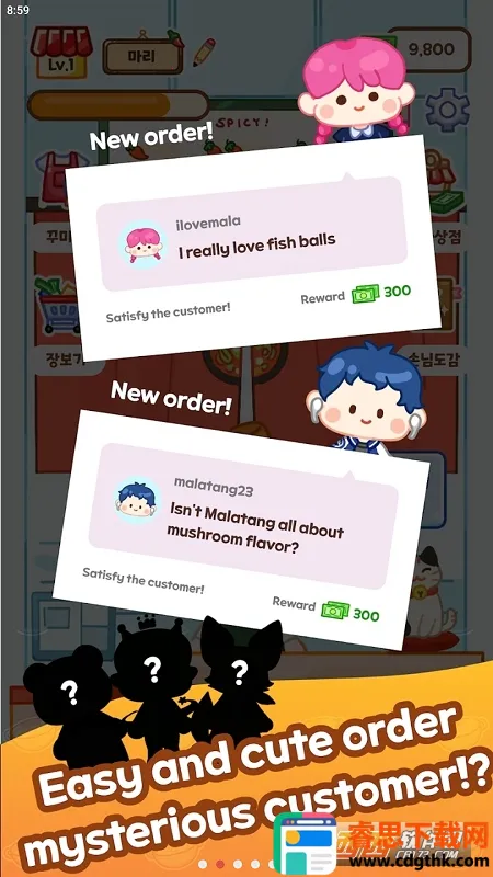 2、多样装饰展现个性:提供多达50种装修风格,从餐厅内部的布置到员工的服饰,玩家都能自由选择,尽情展现自己独特时尚品味,打造充满个性的麻辣烫餐厅。