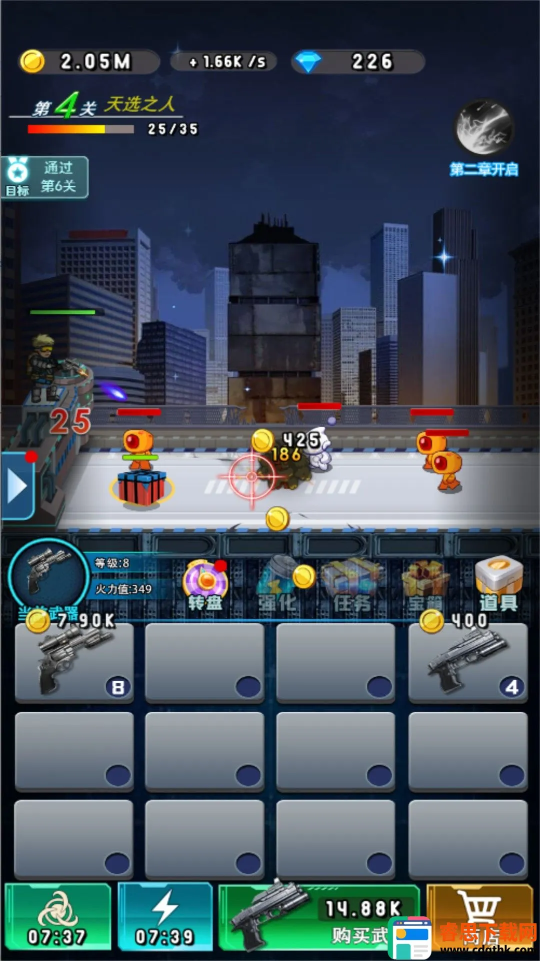 3. 武器升级与成长:提升武器等级与火力值,解锁更强装备,逐步增强生存能力与战斗效率,让你在战斗中更具优势。