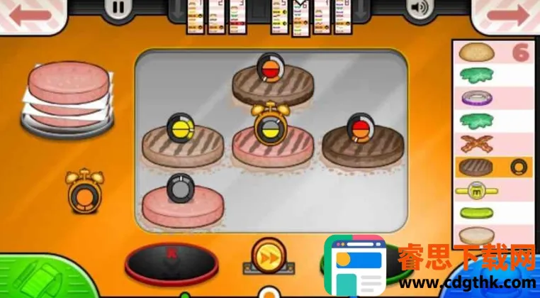 2. 满足多样需求:留意客户各种需求,制作符合要求的汉堡,提升收入来升级装备,还能解锁更多设施装饰店铺。