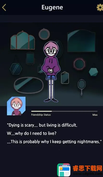 在游戏里,你将扮演尤金,经历各种神秘事件,做出不同选择,这些选择会影响故事走向和角色好感度,进而触发7条故事路线与不同结局。游戏融合了轻小说、视觉小说与互动冒险元素,人物刻画细腻,文字与150幅插画、40段简短动画紧密结合,生动展现每个角色独特个性。
